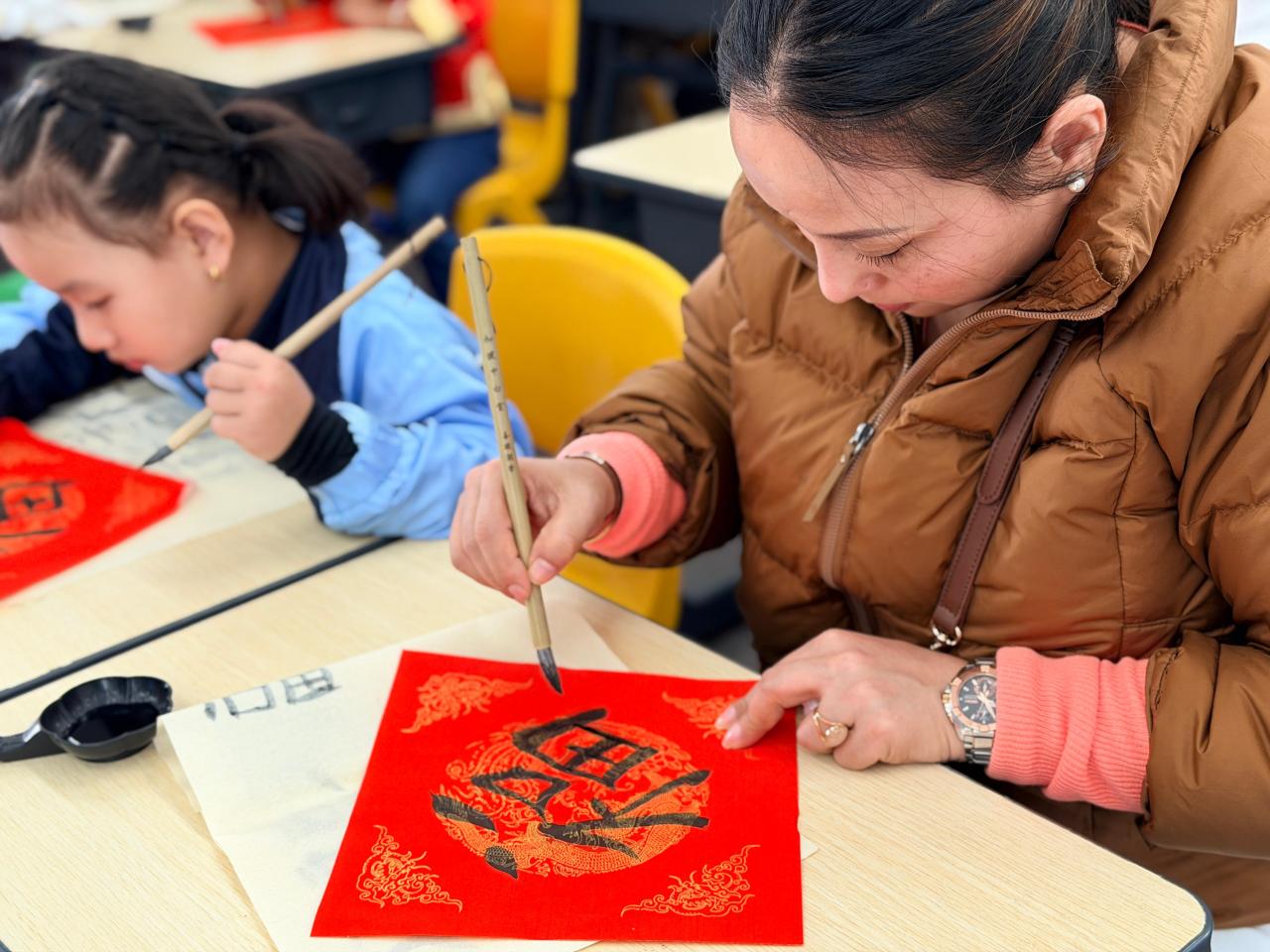 As the Lunar New Year approaches, our school held a special Chinese Brush Calligraphy Parent-Child Workshop on January 17, inviting P1 non-Chinese speaking parents and students to take part. Together, they experienced the unique charm of Chinese calligraphy and personally created festive Fai Chun scrolls, immersing themselves in the joy of traditional culture.