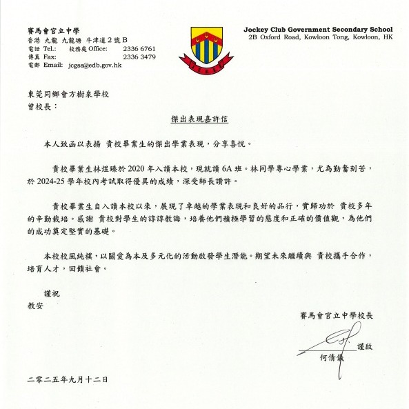 祝賀各位同學,也感謝所有老師的悉心栽培,讓學生在升中後繼續發光發亮!