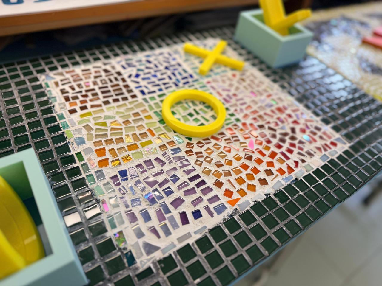 藝創隊發揮巧思,運用馬賽克與 3D 打印技術,為課室書桌換上全新面貌。平凡的課桌搖身一變,成為一張張可供同學遊玩的益智遊戲桌。這項創作既讓同學思考物料的可塑性,也讓日常課室設備成為藝術的一部分。經馬賽克鑲嵌的桌面既美觀又耐用,作品更成為校園中亮眼的風景,促進同學之間的交流與互動。