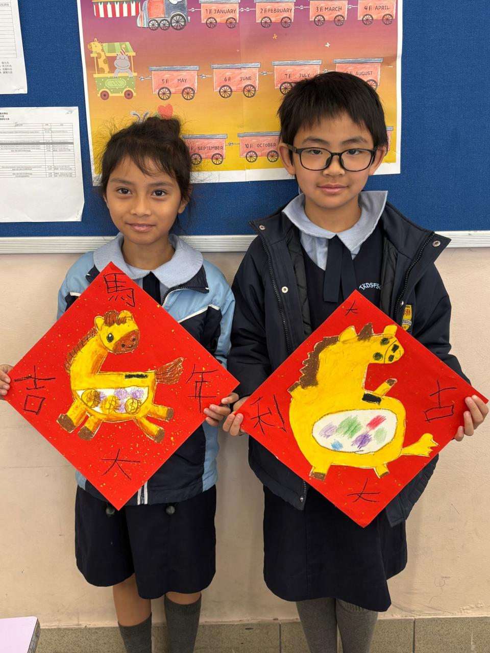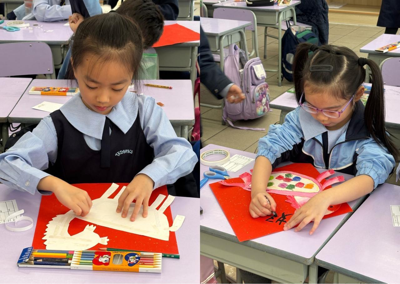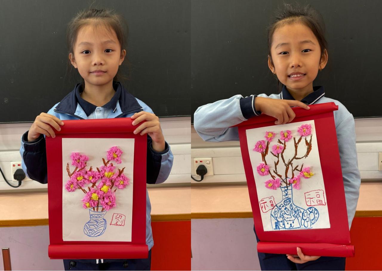 在視藝課堂上,同學們以創意與巧手迎接新春: