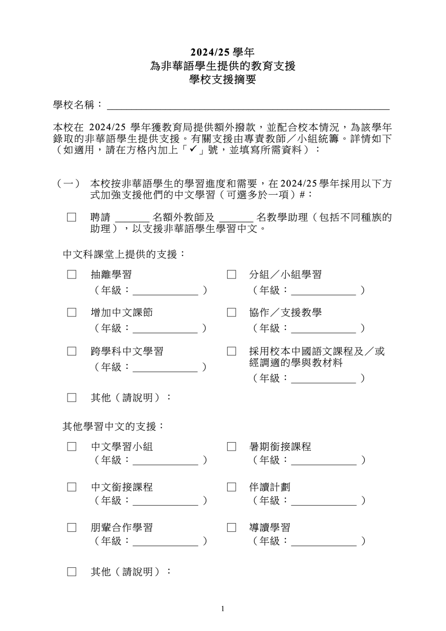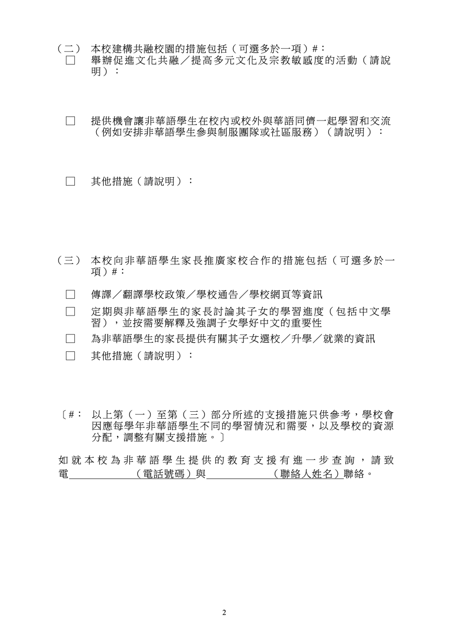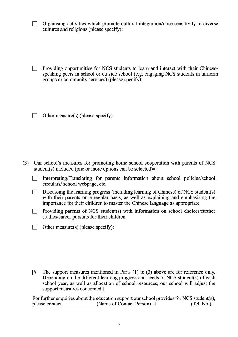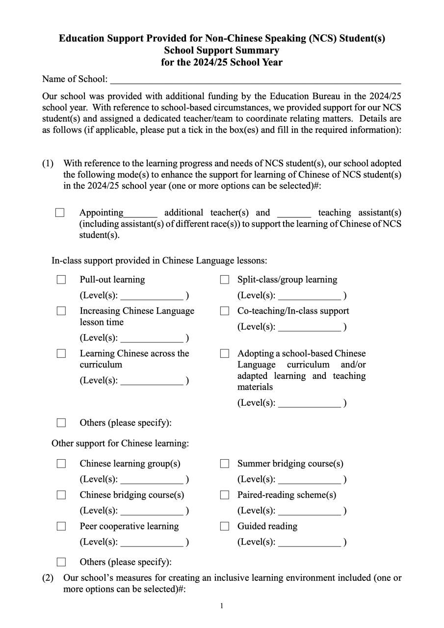 Education Support Provided for Non-Chinese Speaking (NCS) Student(s) 為非華語學生提供的教育支援學校支援摘要(中_Eng)