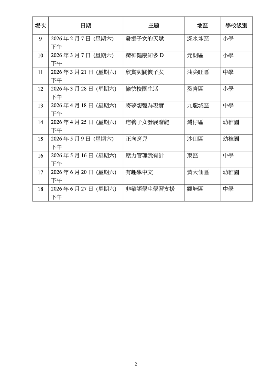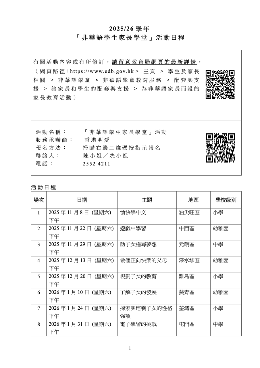 Parent Educationn Programmes for Non-Chinese Speaking Parents 非華語家長教育活動 (25-26活動日程)