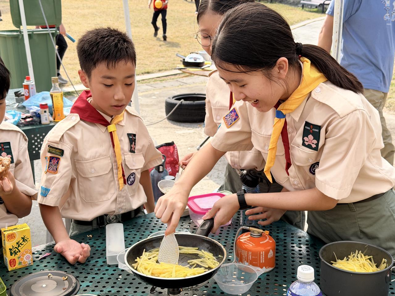 12月6日,本校幼童軍及小女童軍前往 大潭童軍中心,展開戶外學習訓練。活動內容包括烹飪、紮營及遠足等考章挑戰。