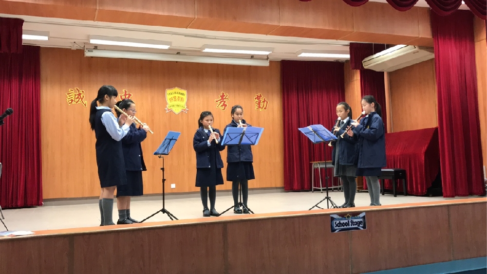 牧童笛是一種易學習的樂器,學生能同時學習運氣及聆聽其他聲部,對訓練聆聽非常有效果。因此,三至六年級同學會於音樂課進行校本牧童笛課程,務求每個同學至少懂得演奏一種樂器。另一方面,吹奏表現良好的同學更會被老師推薦加入本校木笛隊,透過恆常課後訓練發展音樂專長。