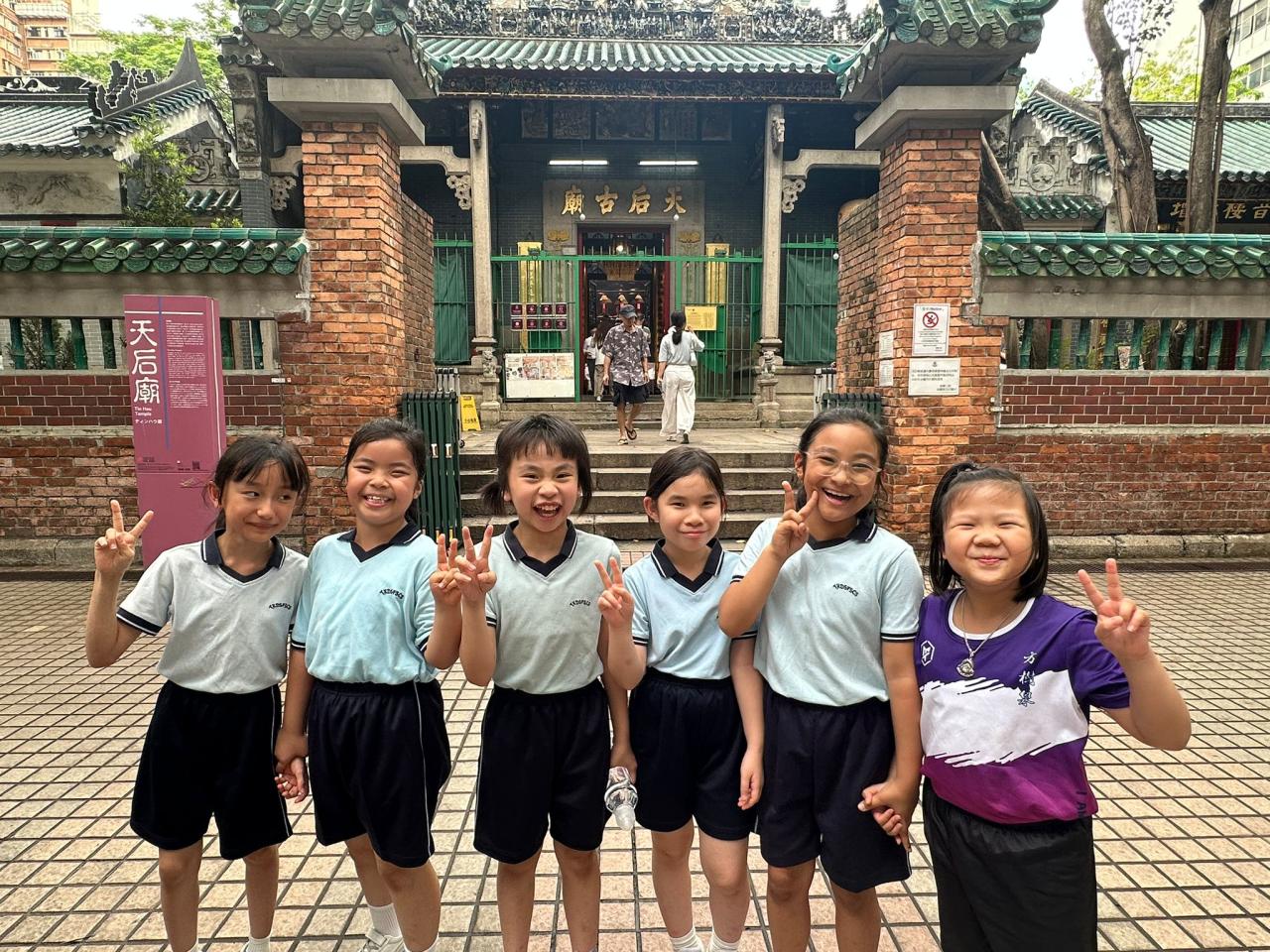 On April 14th, our P3 students participated in a Chinese Language co-curricular activity, stepping out of the classroom to explore the vibrant culture of Yau Ma Tei. Students visited several iconic landmarks, including the Yau Ma Tei Fruit Market, Shanghai Street, and the Tin Hau Temple. By combining on-site observation with "visual word cards," students were able to master new vocabulary more effectively while deepening their understanding of the community's history and environment, further sparking their interest in learning.