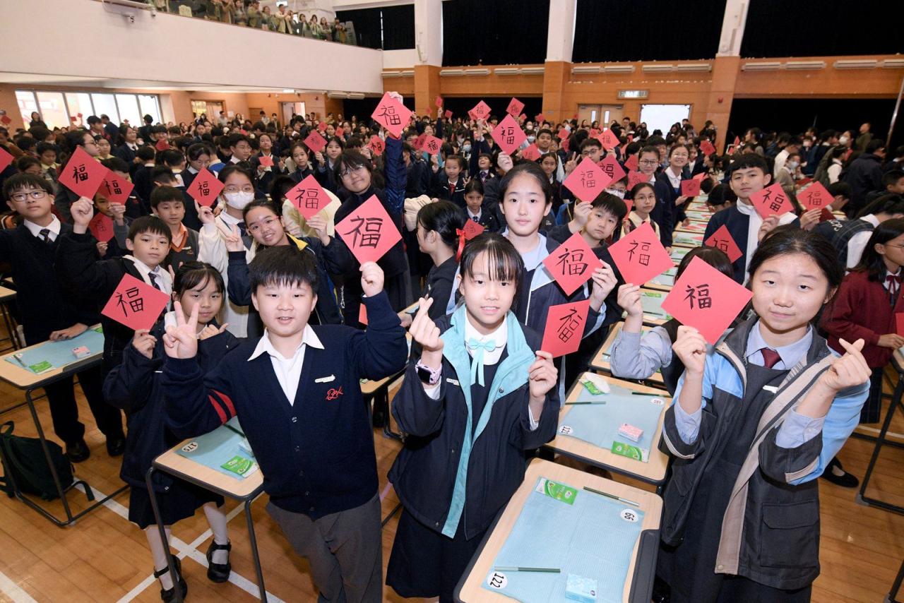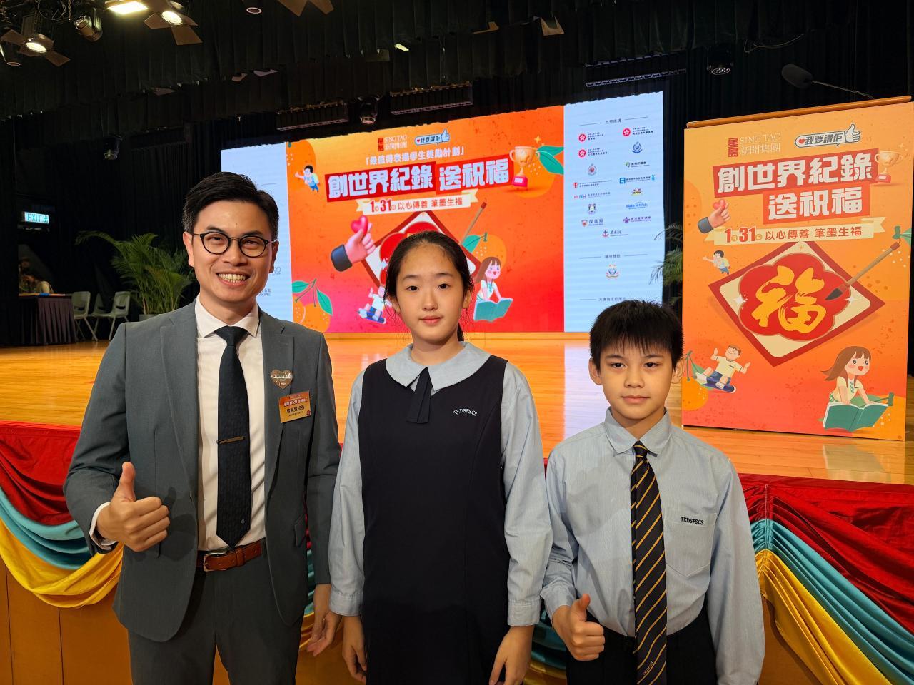 在頒獎禮上,曾校長、兩位同學與在場共1142位師生即席揮毫,共同書寫吉祥「福」字,並攜手創下世界紀錄。活動書寫的「福」字,有機會隨部分《頭條日報》送出,希望將這份福氣和祝福與全港的市民分享!