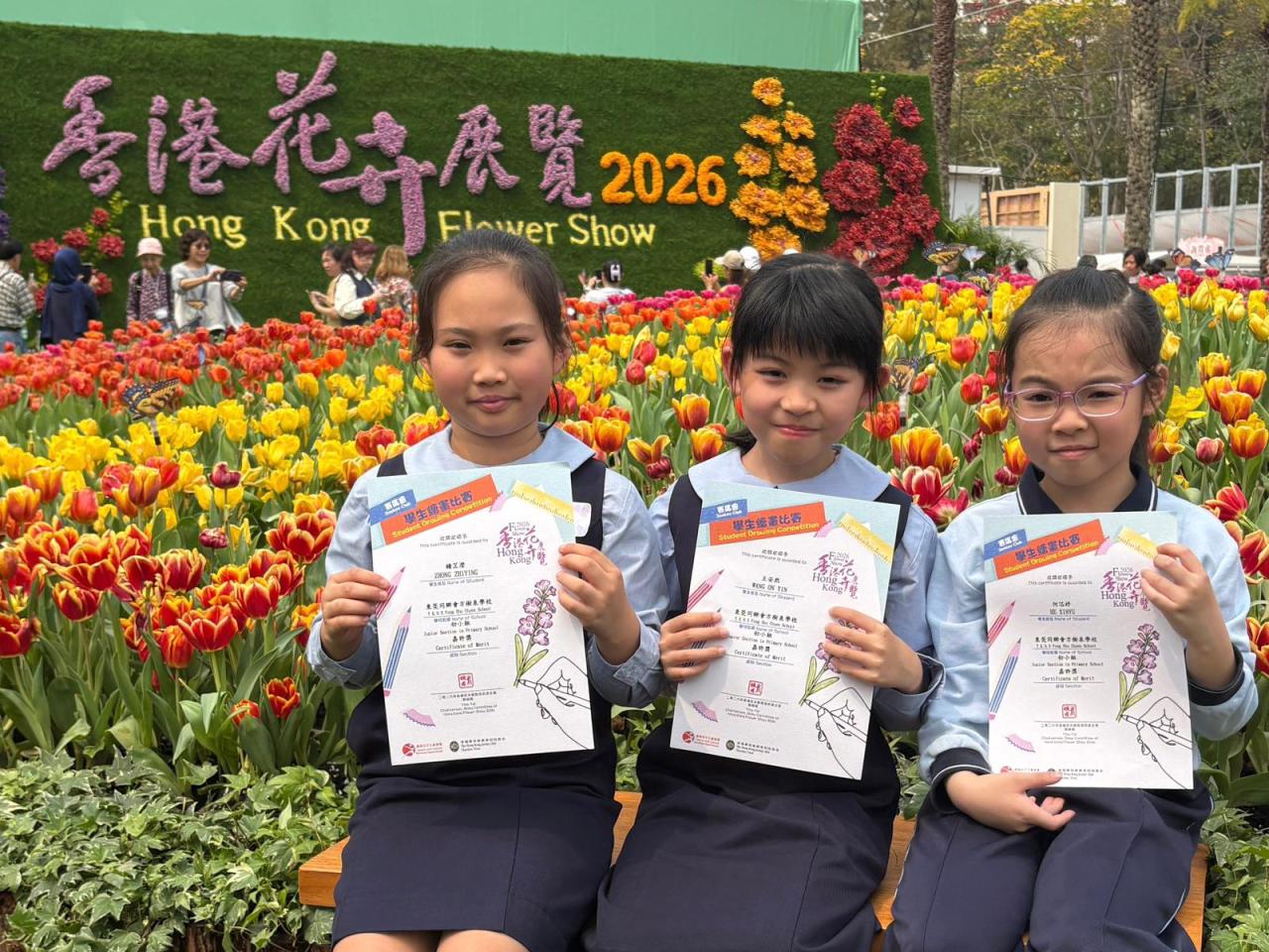 在剛結束的「二零二六年香港花卉展覽(花展)賽馬會學生繪畫比賽」中,三位同學憑藉獨特的創意與細膩畫筆,於過千份參賽作品中脫穎而出,勇奪嘉許獎!