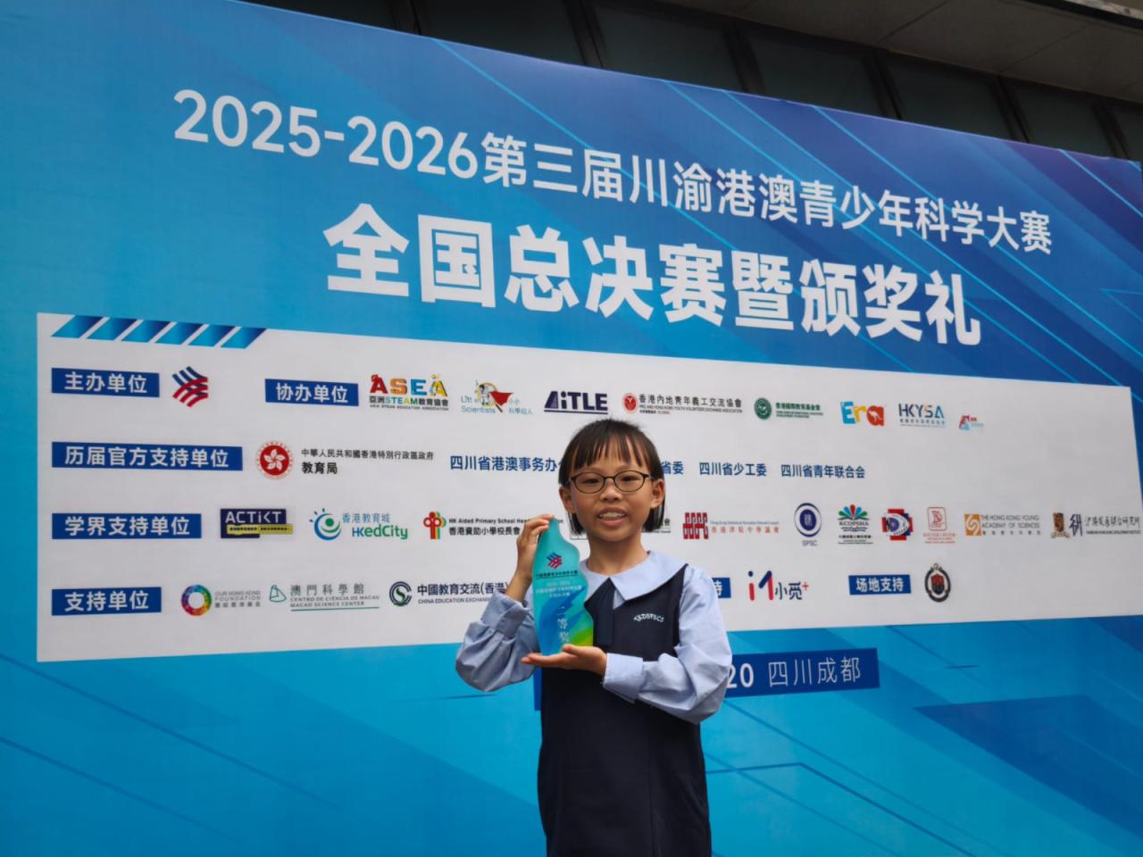 Our student achieved outstanding results in the Hong Kong Regional Finals of the 3rd Sichuan-Chongqing-Hong Kong-Macao Youth Science Competition. As part of the Hong Kong delegation, we proudly traveled to Chengdu to participate in the National Finals, where we won the Second Prize.