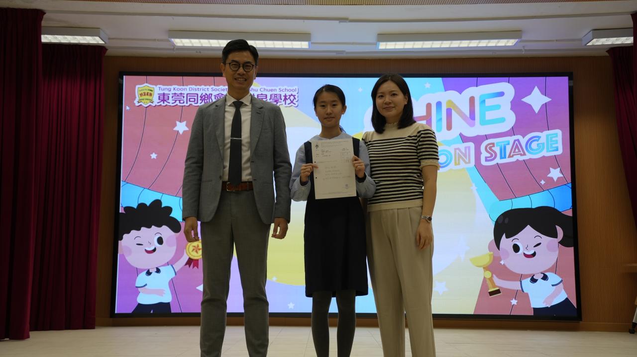 本校 6C 蔡榕容同學在第七十七屆香港學校朗誦節 小學五、六年級女子組詩詞獨誦(普通話) 中,勇奪季軍 !恭喜蔡榕容同學!感謝老師悉心指導!