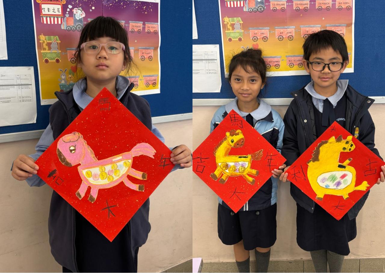 在視藝課堂上,同學們以創意與巧手迎接新春: